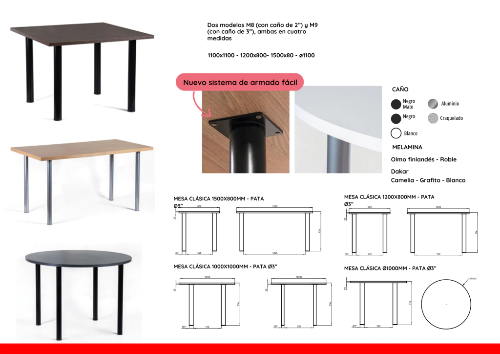 ✨ ¡Dale un toque especial a tu hogar con nuestro Combo de 1 Mesa M8 REDONDA + 4 Sillas SC02! 🌟 Esta mesa redonda de 110 cm cuenta con una base de caño resistente y tapa en melamina, perfecta para esos encuentros con amigos o familiares. Las sillas apilables tienen terminación cuadrada y están disponibles en el color que más te guste, adaptándose a tu estilo.